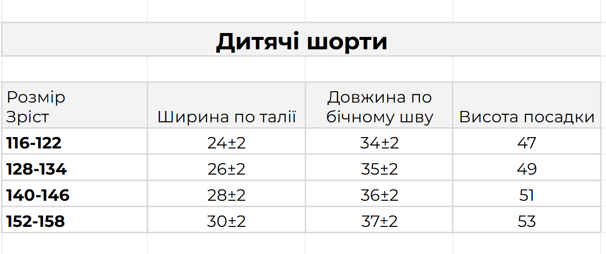 Нижче ви можете подивитися детальні заміри для дитячих шортів для хлопчика.