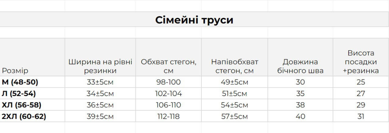 Нижче ви можете переглянути детальні заміри для чоловічих трусів сімейок. Після замовлення наш спеціаліст допоможе з вибором розміру в телефонному режимі, де ви зможете висловити всі свої побажання.