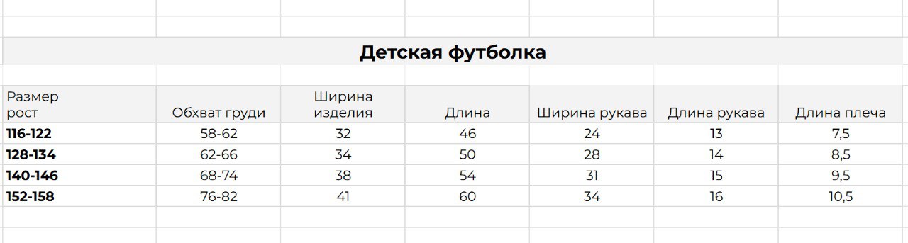 Ниже вы можете посмотреть детальные замеры для детской хлопковой футболки.