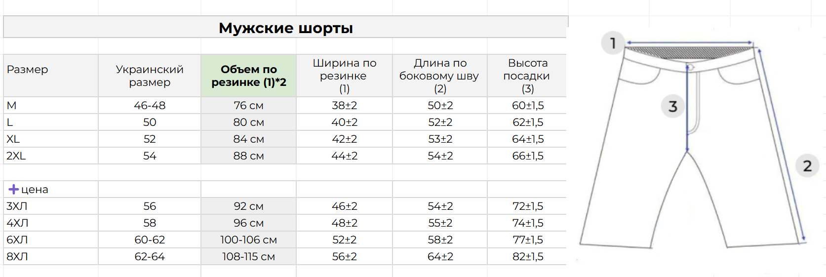 Ниже вы можете посмотреть детальные замеры мужских трикотажных шортов.